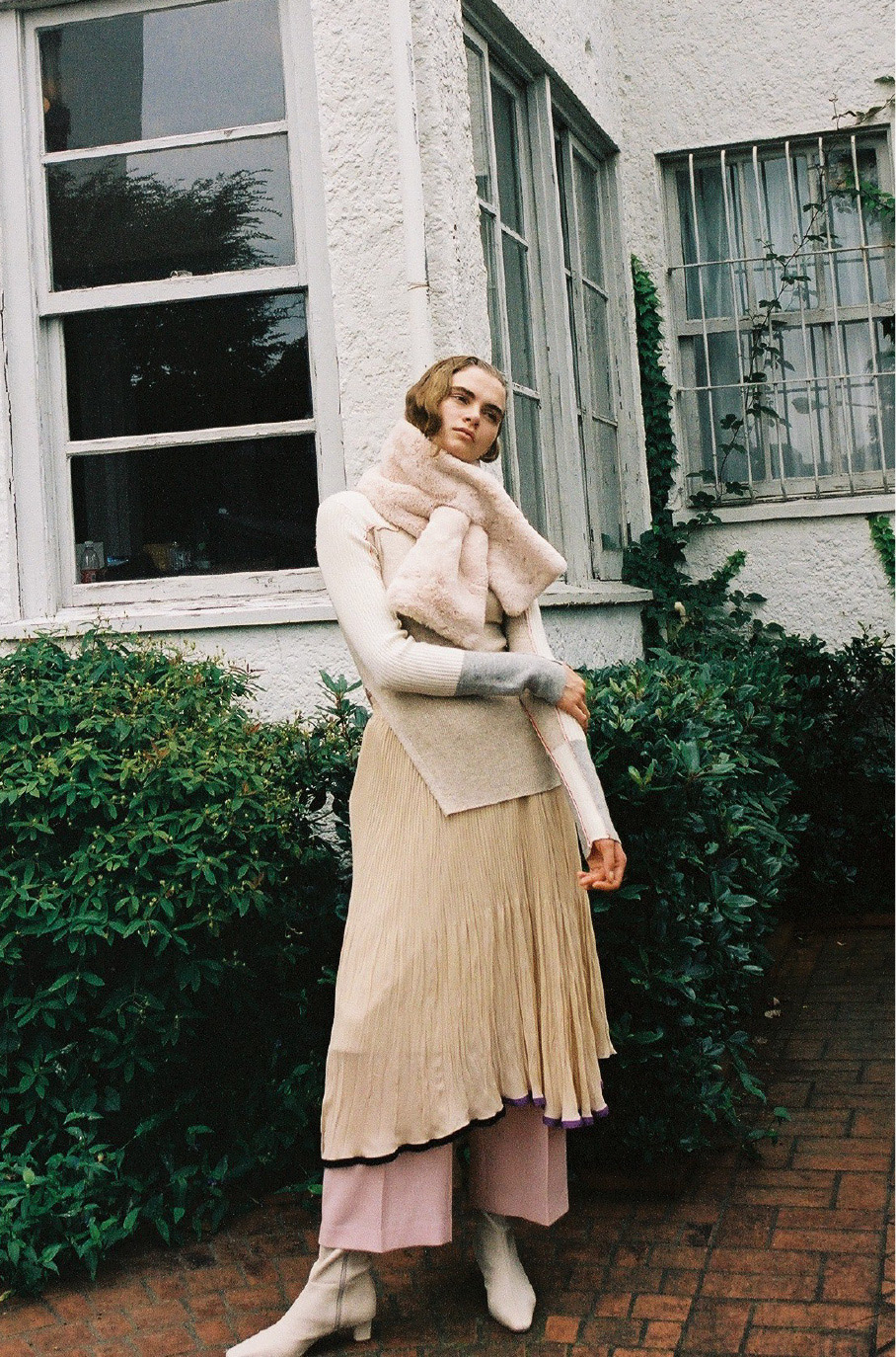 Tops 17,000yen+tax, Skirt 22,000yen+tax, Pants 21,000yen+tax, Scarf 6,000yen+tax, Shoes 43,000yen+tax