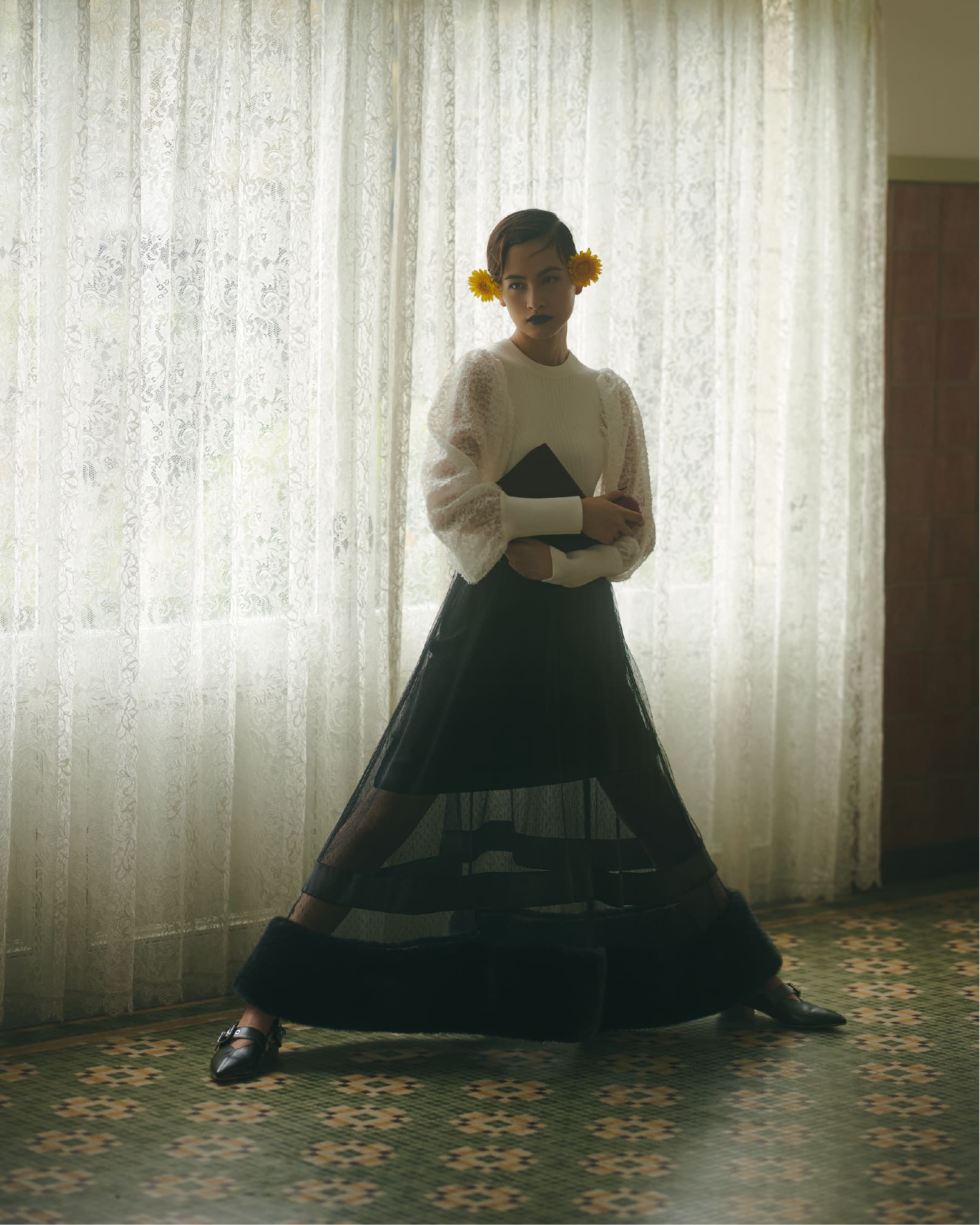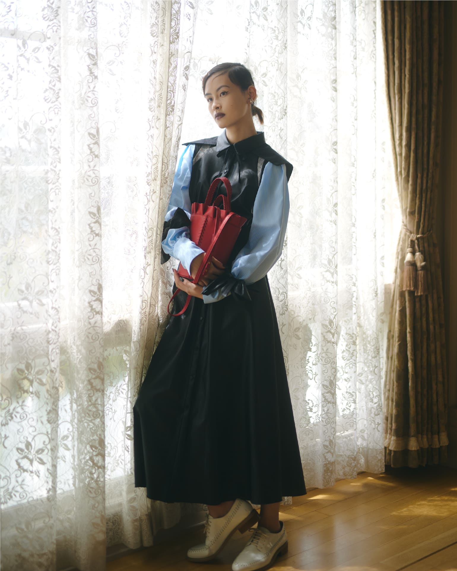 イメージ的には“魔女のお出かけ服”。お茶をしに出かける時の、勝負服のような感じでしょうか。個人的に一番お気に入りのLOOKです。