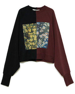 センターで切り替えたショート丈のスウェットは