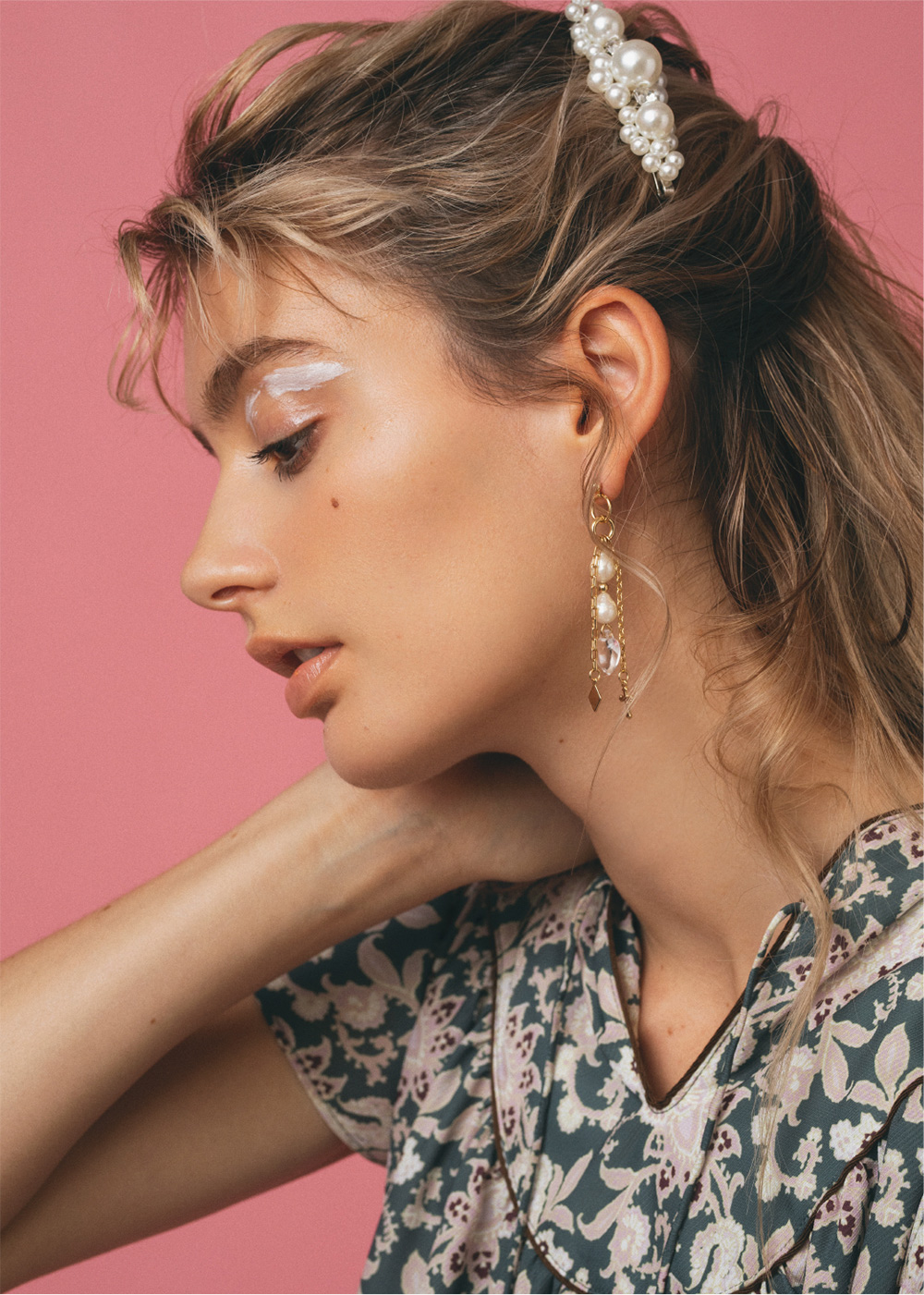 Pearl Flower Pin Trump Motif Pierced Earrings
