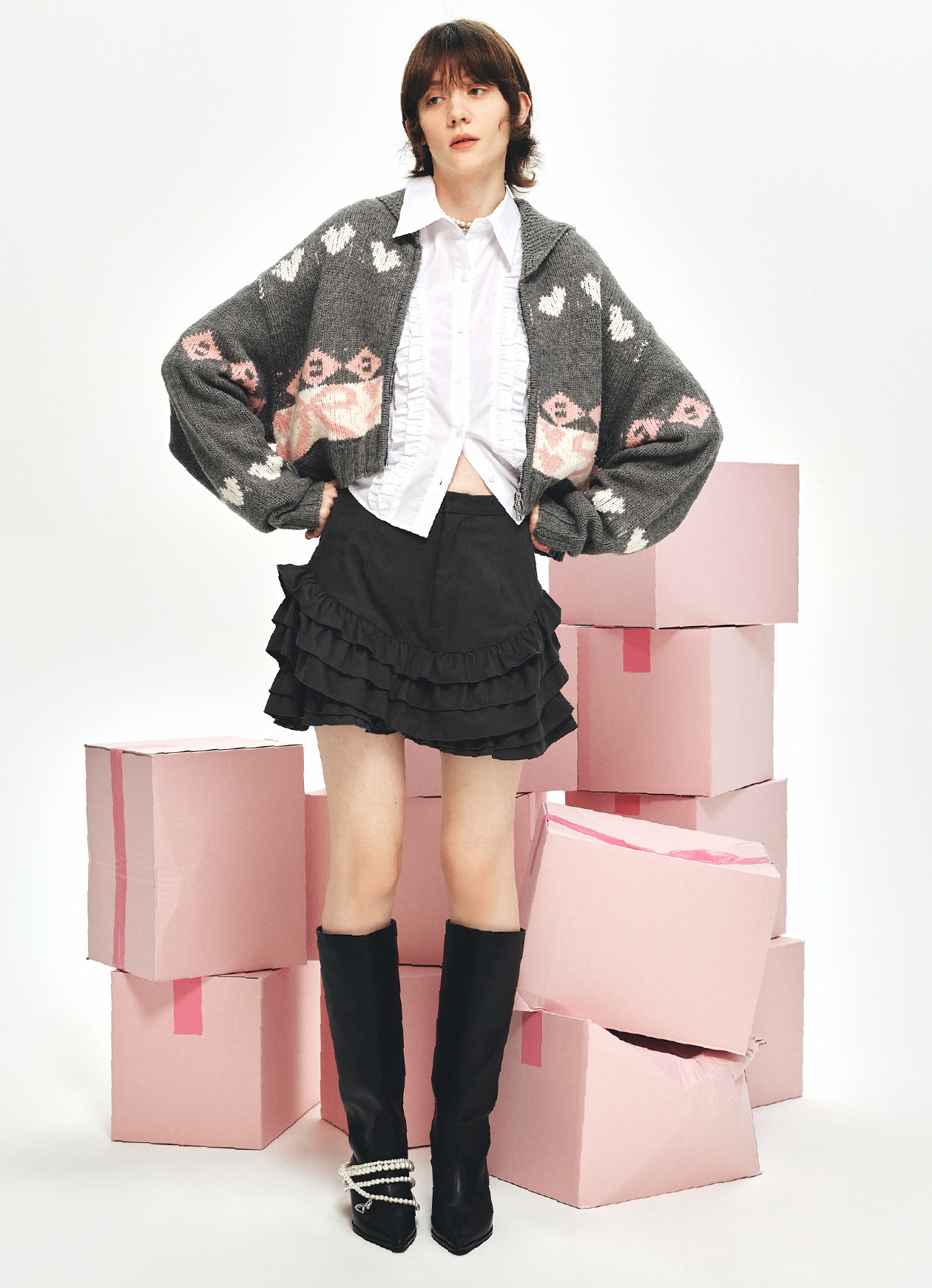 FRILL DESIGN BLOUSE&FLARE DESIGN SKIRT