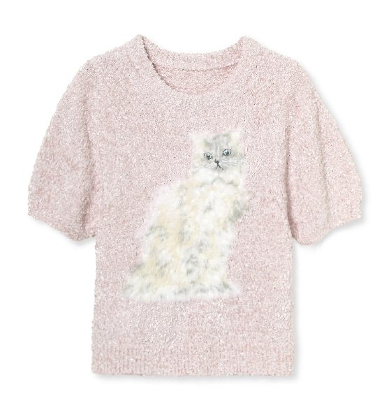 ふわふわの毛並みのニット、