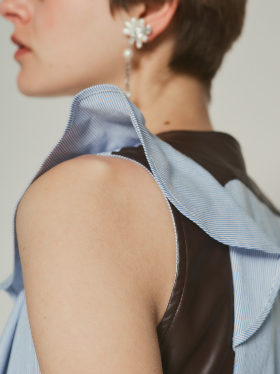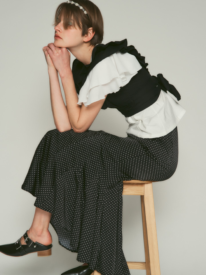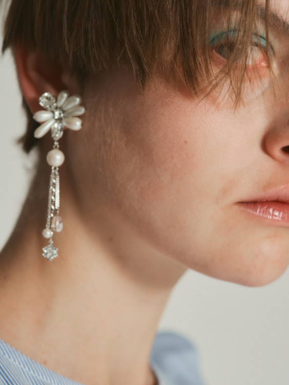 Shirt 24,200yen Skirt 26,400yen Pierced Earrings 9,900yen