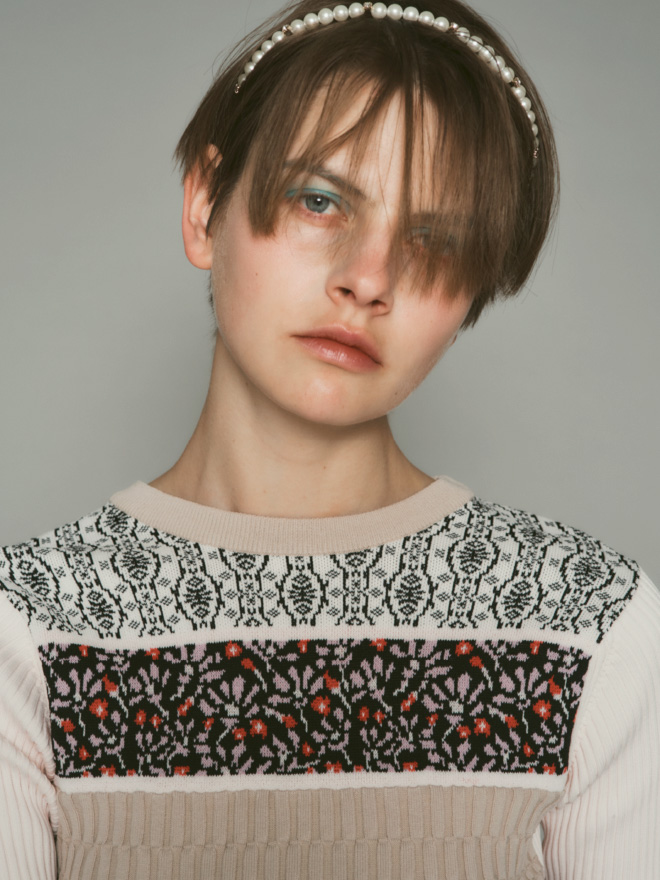 Pullover 14,300yen Skirt 19,800yen Hairband 4,400yen
