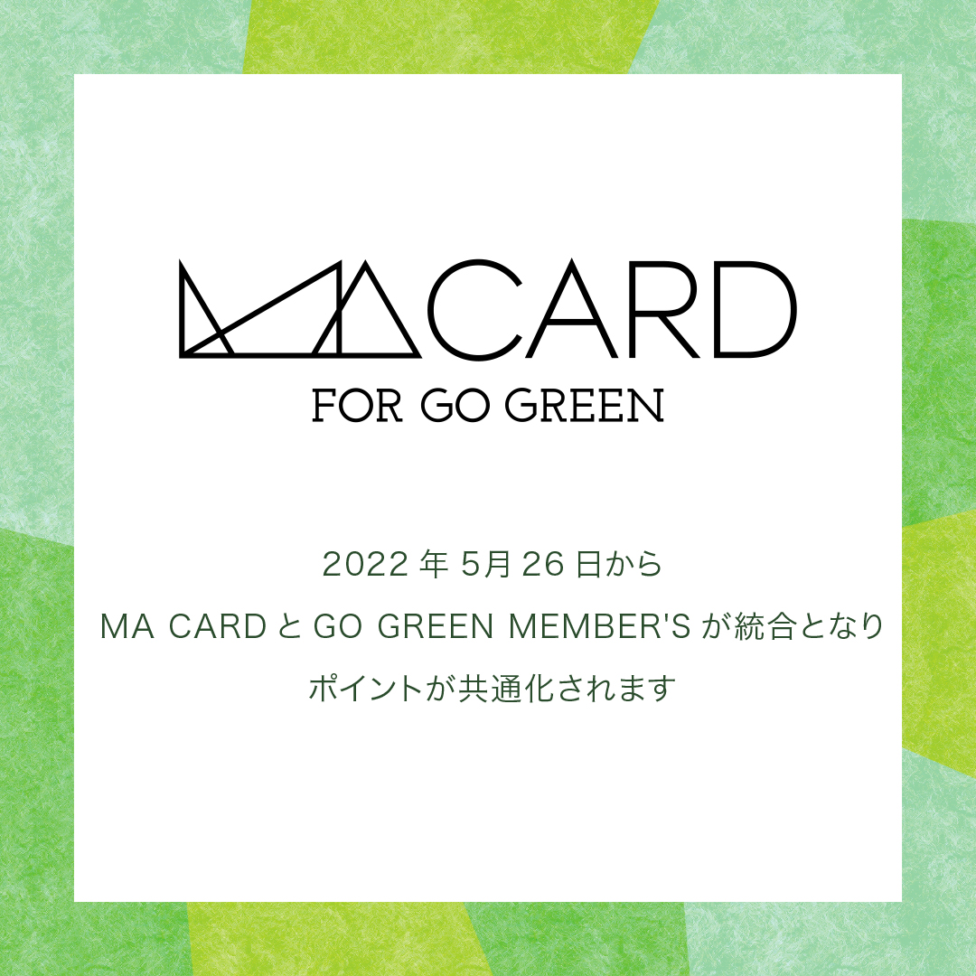 マッシュグループが運営する会員サービス「MA CARD」および「GO GREEN MEMBER’S」に関しまして、2022年5月26日に会員統合し、新会員サービス「MA CARD FOR GO GREEN」を開始いたします。